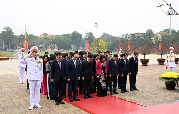 Trước anh linh Chủ tịch Hồ Chí Minh vĩ đại, các đồng chí lãnh đạo bày tỏ lòng biết ơn vô hạn, lòng thành kính tưởng nhớ công lao to lớn của Chủ tịch Hồ Chí Minh đối với sự nghiệp đấu tranh giải phóng dân tộc, thống nhất đất nước, xây dựng Tổ quốc Việt Nam xã hội chủ nghĩa hòa bình, độc lập, thống nhất, ngày càng phồn vinh và phát triển.