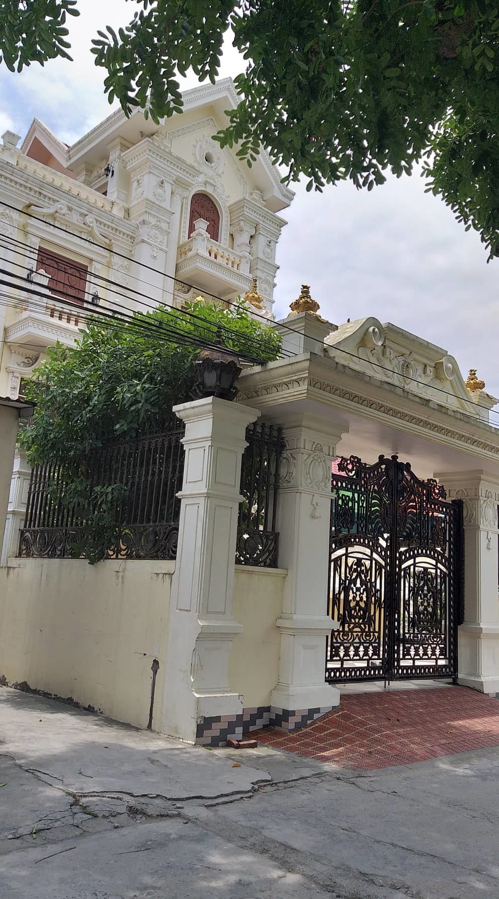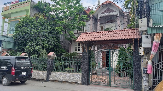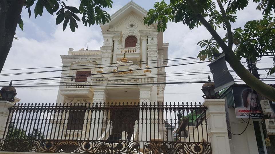 Biệt thự có màu sơn chủ đạo là trắng, một số chi tiết trang trí mạ màu vàng đồng. Một người hàng xóm còn tiết lộ: 'Trong thời gian vắng nhà, người chủ chi ra 5 triệu đồng/tháng, thuê một người trông coi, quét dọn'.