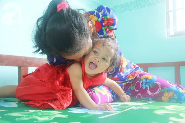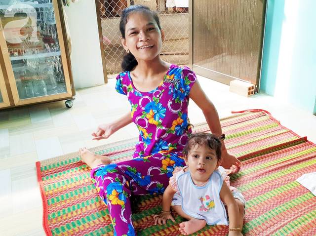 Những ngày giữa tháng 8/2018, chúng tôi gặp lại Thạch Thị Mai (28 tuổi, ngụ xã Phước Hưng, huyện Trà Cú, tỉnh Trà Vinh) sau gần một năm kể từ lúc bé Thạch Thị Mai Phương cất tiếng khóc chào đời. Vẫn ngây ngô như thế, Mai đưa đôi chân tay co quắp rồi khó nhọc khum người xuống, ú ớ cười đùa với bé Mai Phương.