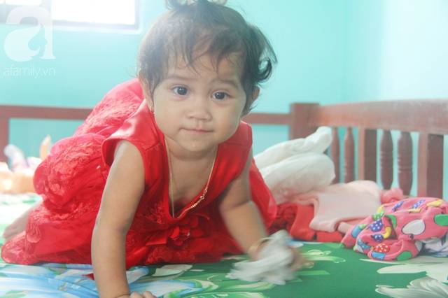 Đã gần 1 tuổi, Mai Phương giờ đã biết bò quanh nhà, thậm chí chậm chững bước đi đầu tiên.