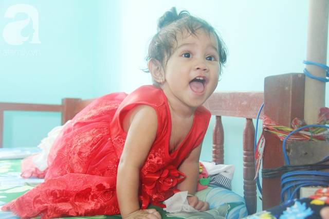 Bé Mai Phương đã chập chững biết đi, cười đùa bên người mẹ tật nguyền