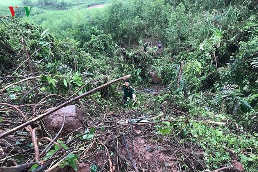 Hiện trường vụ tai nạn máy bay quân sự Su-22 ở Nghệ An. Ảnh: VOV.