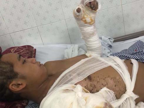 Chị Lý cố gắng gượng dậy ngồi nói chuyện với mọi người