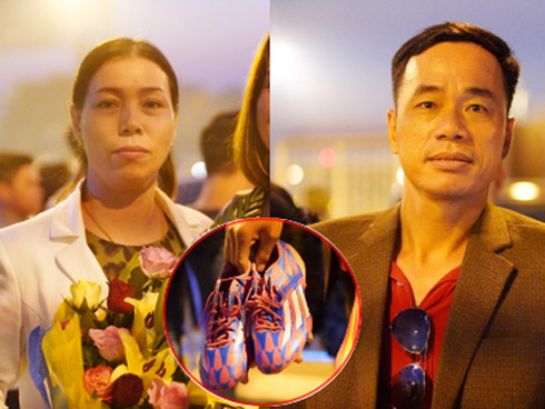 Mẹ cầu thủ Quang Hải có mặt tại sân bay Nội Bài từ sớm để chờ đón các cầu thủ về nước.