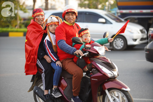 Một gia đình cũng đã đi xe máy lên tận sân bay đón các cầu thủ.