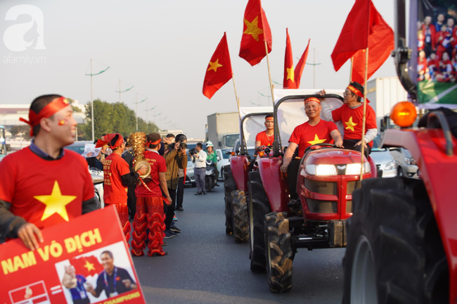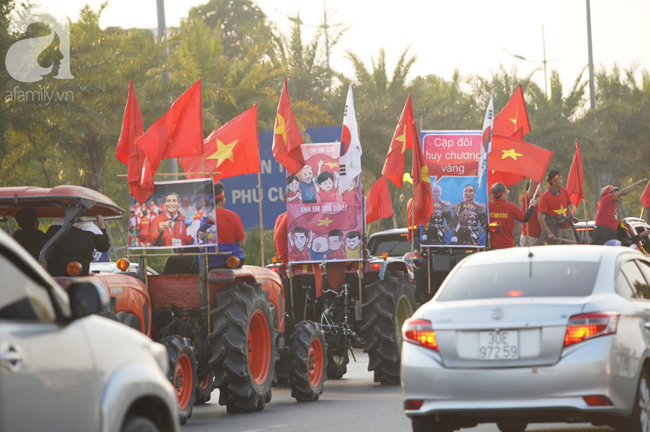 Dàn máy cày nối đuôi nhau chờ đón các cầu thủ U22 Việt Nam