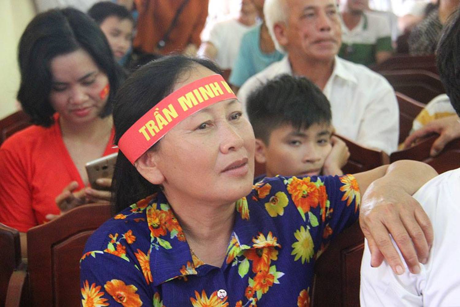 Bà Nguyễn Thị Chuốt (mẹ cầu thủ Minh Vương) không giấu nổi buồn rầu, nước mắt bà chực trào ra khi tiếng còi chung cuộc vang lên.