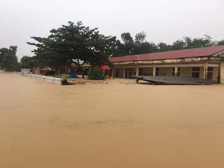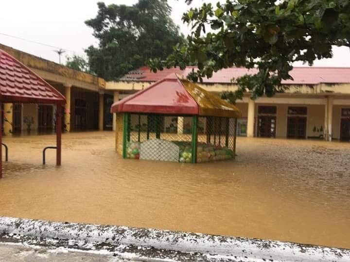 Các trường học tại Hà Tĩnh ngập trong nước lũ khiến lịch Khai giảng năm học mới bì trì hoãn.