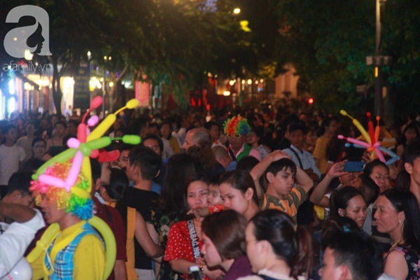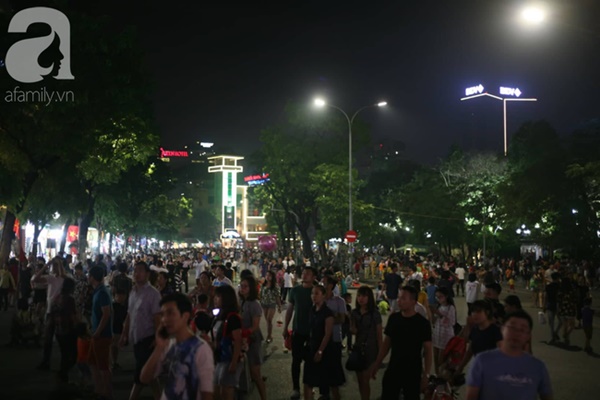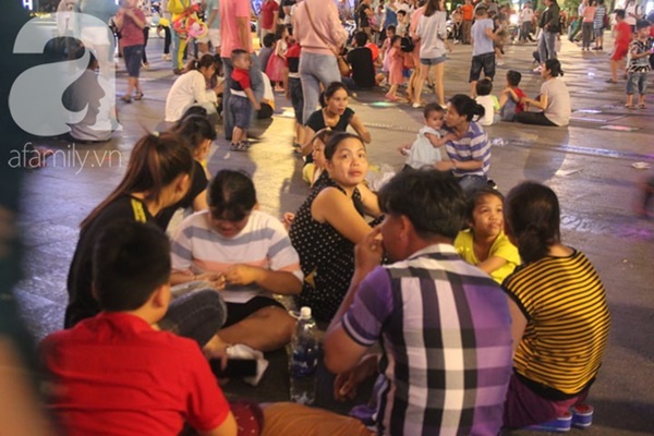 20h10, tại Hà Nội và TP.HCM, lượng người đổ dồn về các tuyến phố đi bộ mỗi lúc một đông, nhiều em nhỏ mệt mỏi vì chờ đợi khá lâu.