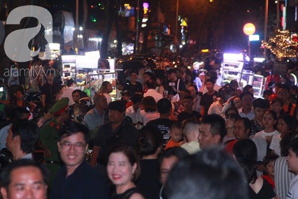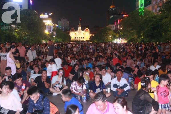18h45, tại phố đi bộ Nguyễn Huệ, người dân đã đến mỗi lúc một đông, trong khi đó tại đường Nguyễn Hữu Cảnh, đoạn vào Landmark, hàng trăm ô tô nối đuôi nhau xếp hàng dài, kẹt xe kinh hoàng.