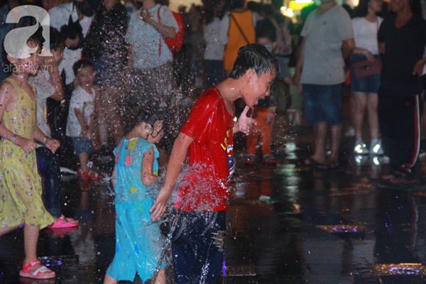 Nhiều em nhỏ tranh thủ nghịch nước.