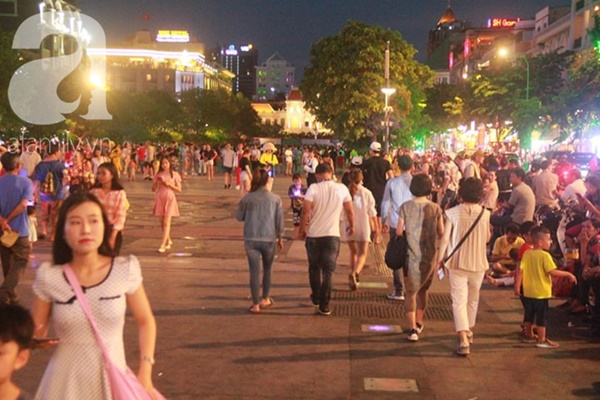 18h: Trên nhiều tuyến đường ở trung tâm TP.HCM như Nguyễn Thị Minh Khai, Lê Thánh Tôn, phố đi bộ Nguyễn Huệ... người dân đã bắt đầu đổ dồn về, tìm những địa điểm thích hợp để đón xem màn pháo hoa kéo dài 15 phút trên hầm vượt sông Sài Gòn.