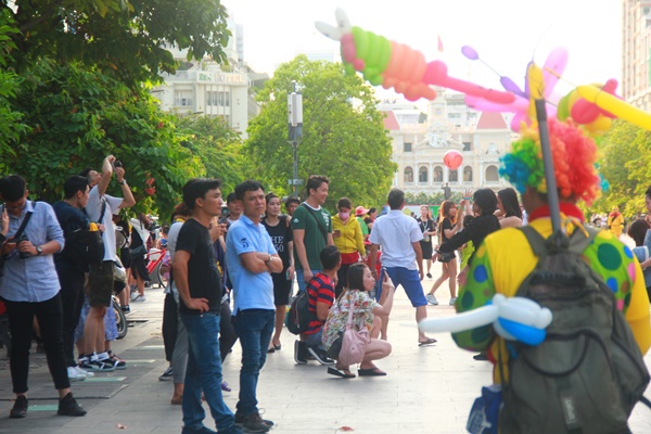 Người dân bắt đầu tập trung về phố đi bộ Nguyễn Huệ (quận 1) để chờ đón màn pháo hoa tối nay.