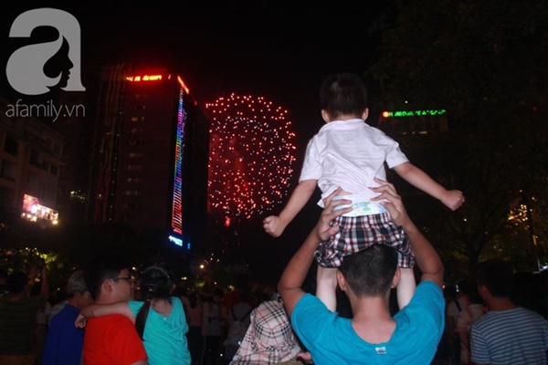 21h, người dân TP.HCM chiêm ngưỡng màn pháo hoa tuyệt đẹp mừng Ngày giải phóng miền Nam 30/4. Nhiều em nhỏ được bố mẹ cõng trên vai để xem pháo hoa, reo hò thích thú.