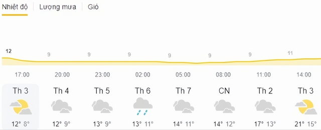 Nhiệt độ cao nhất từ: 11-14 độ, vùng núi cao có nơi dưới 8 độ