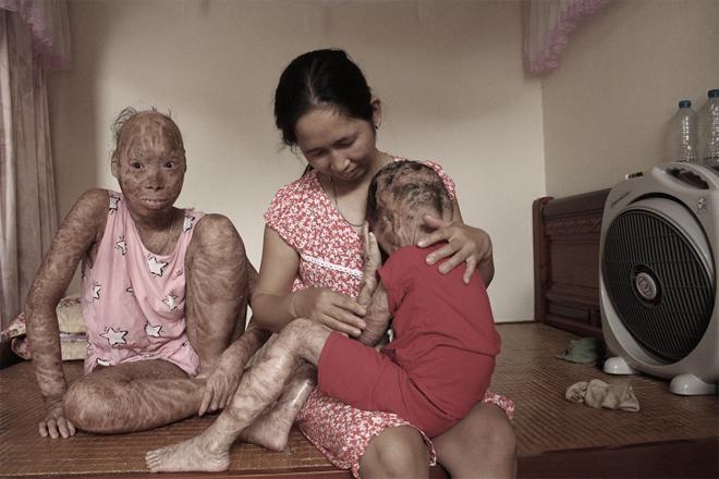 “Ban ngày tôi có thể cho các con tắm liên tục chứ buổi đêm không dám. Tôi sợ chúng lạnh rồi sinh bệnh nên gắng lắp cái điều hoà mà không ăn thua. Hai đứa vẫn ngứa rát khắp người. Hơn nữa đôi mắt của các con không có lông mi, khi ngủ không thể nhắm chặt nên nước mắt chảy cả đêm khiến mặt, tai và gáy luôn trong tình trạng đau xót”, chị tâm sự.