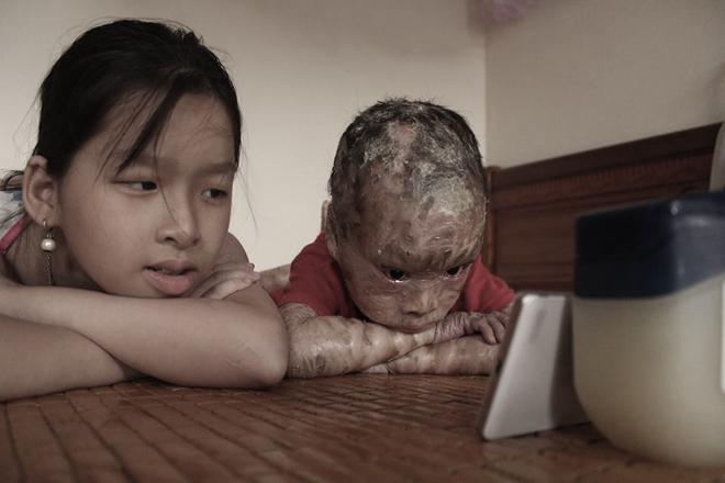 “Vừa thấy con, họ đã lắc đầu bảo chưa từng gặp trường hợp trẻ sơ sinh nào như vậy. Họ khuyên vợ chồng tôi khẩn trương đưa con lên Bệnh viện Da liễu Trung ương khám. Tại đây, các chuyên gia đầu ngành chẩn đoán con mắc chứng bệnh da khô vảy cá, không có thuốc chữa. Khi ấy tôi chết lặng không tin vào lời bác sĩ nói”, chị nấc nghẹn.