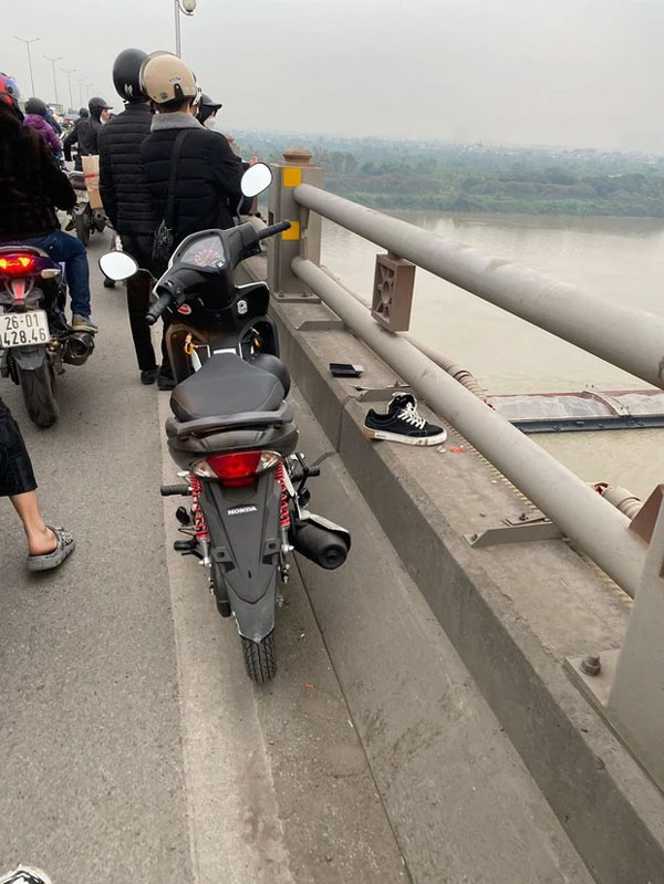 Cách đây ít giờ, trên mạng xã hội xuất hiện nhiều bài viết chia sẻ nghi vấn một nam thanh niên nhảy cầu Thanh Trì (Hà Nội). Các bài đăng kèm theo hình ảnh chụp xe máy, giày và ví nghi là của nam thanh niên để lại trên cầu. Một vài người dân đã báo lực lượng chức năng.