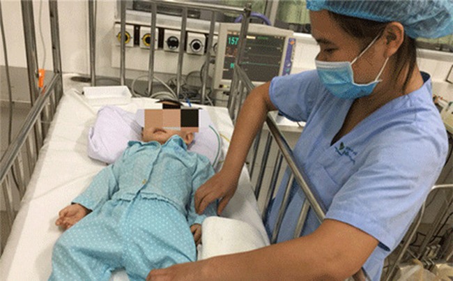 Bé T.A đang được chăm sóc tại BV Nhi Trung ương. Ảnh: Lệ Hà