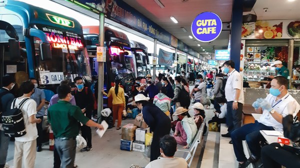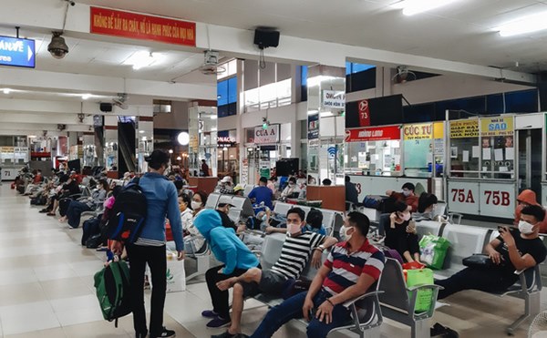 Nhiều người tranh thủ rời khỏi TP. HCM trong tâm trạng vội vàng trước giờ áp dụng biện pháp hạn chế di chuyển.