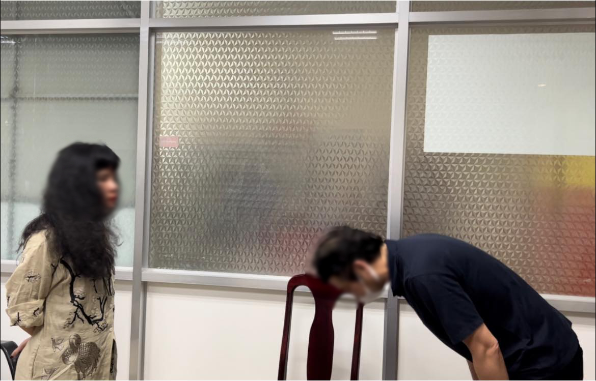 Gã quay lén cúi đầu xin lỗi nạn nhân