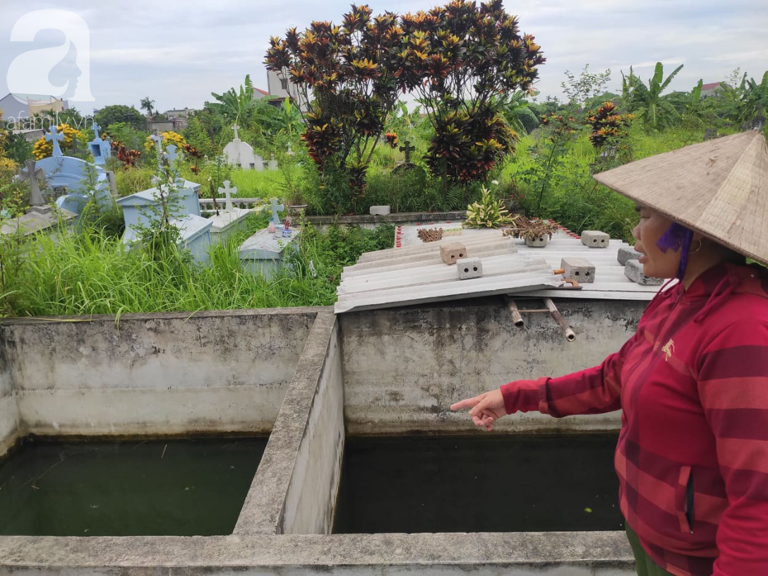 Hai chiếc bể này chị Cúc xây dựng sẵn cho hai vợ chồng sau khi mất, giờ nhường lại phần bể để chôn cất thai nhi