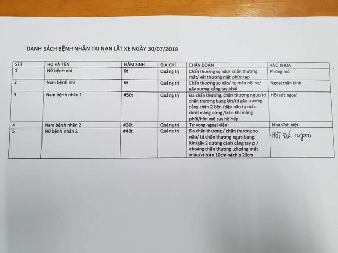 Tình trạng chấn thương của các nạn nhân trong vụ tai nạn đang được cấp cứu tại bệnh viện