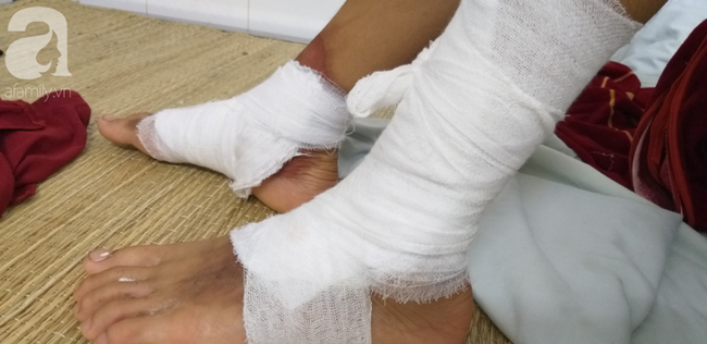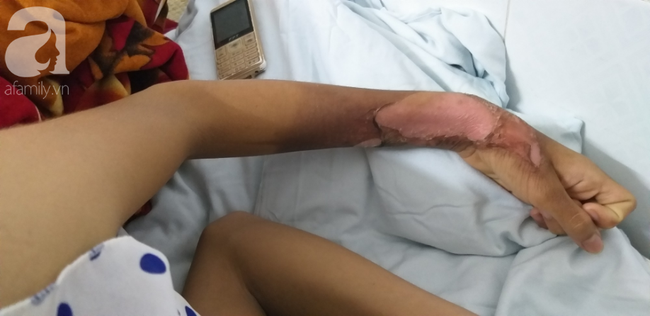 Cháu Nhung bị bỏng toàn bộ hai chân.