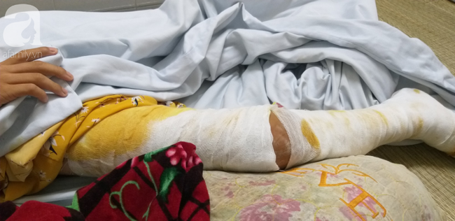 "Sau nhiều ngày mà các cháu không thuyên giảm, gia đình tôi đưa các cháu đi bệnh viện Bỏng Quốc gia, bác sĩ kiểm tra thì vết thương ở mông bị hủy hoại rồi và các con sinh hoạt rất khó khăn, giờ thì tôi rất lo lắng", người mẹ đau xót.