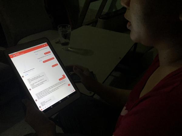 Chị Th. xem lại những dòng trò chuyện với người bạn quen biết trên mạng.
