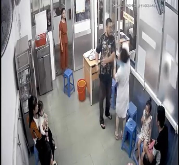 Thế nhưng, một người đàn ông cao lớn được cho là ba của bé L. đã tiến đến tát rất mạnh vào mặt điều dưỡng H. khiến cô choáng váng, lùi vài bước ra sau, rớt chiếc mũ của nhân viên y tế đang đội xuống đất.