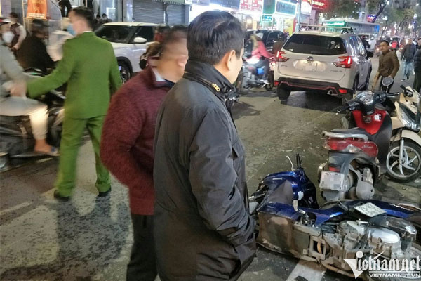 Theo người dân chứng kiến sự việc, ô tô màu trắng, nhãn hiệu Subaru mang BKS 30G- 111.XX do nam thanh niên điều khiển đang di chuyển theo hướng từ nút giao phố Đại La về nút giao phố Lê Thanh Nghị thì bất ngờ lao vào 10 xe máy đang đứng ở bên đường.