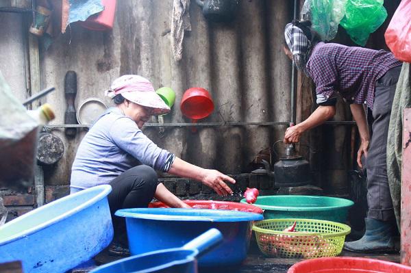 Trời lạnh những người lao động nghèo phải dùng nước ấm để rửa khoai cho khỏi cóng tay.