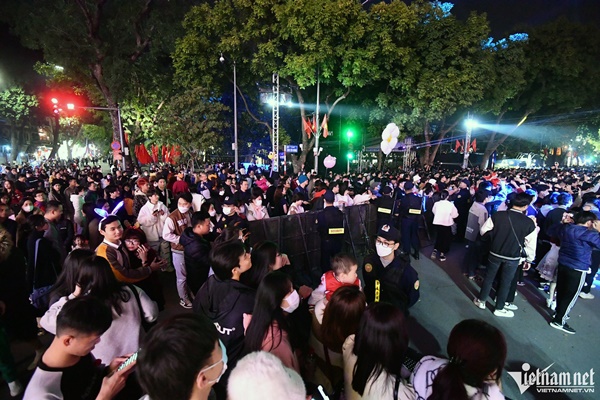 "Biển" người tập trung phía ngoài Nhà thờ Lớn. Họ đứng chật kín các vị trí kéo dài từ đây đổ về từ phía các tuyến phố Hàng Trống, Lý Quốc Sư, Lê Thái Tổ…