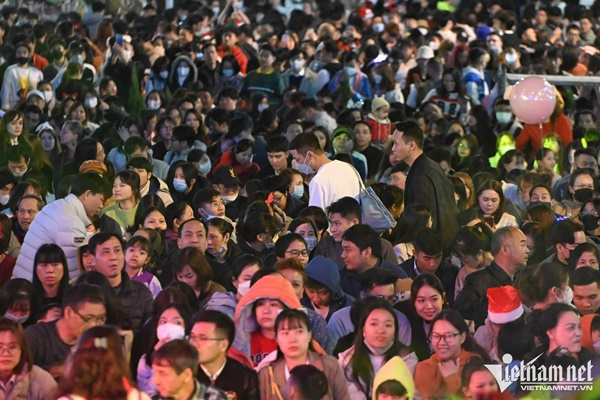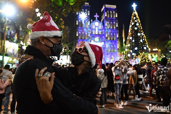 Lễ đón Giáng sinh diễn ra vào lúc 0h ngày 25/12, tuy nhiên ngay sau bữa cơm tối, hàng nghìn người dân Hà Nội đã sớm đổ về trung tâm thủ đô vui chơi. Thời tiết không quá lạnh, chỉ 18 độ C giúp các gia đình, giới trẻ thoải mái thưởng ngoạn không khí Noel một cách ấm áp.