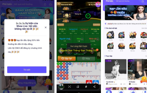 Bên cạnh đó, không chỉ chứng kiến các hình ảnh khoe thân trắng trợn mà ứng dụng này còn là nơi người dùng có thể tham gia hàng loạt game bài tài xỉu, xóc đĩa, cá cược phi pháp.