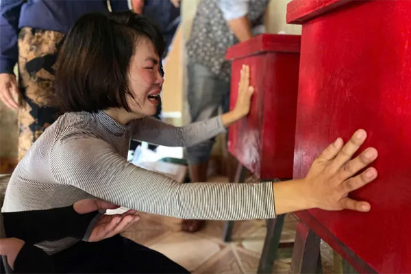 Trong căn nhà cấp bốn, mẹ của hai cháu là chị Nguyễn Thị Tưởng (32 tuổi) hiện không còn chút sức lực cũng như tâm trí vì cùng lúc mất đi hai đứa con trai. Còn chồng chị là anh Võ Văn Anh (36 tuổi) thì vẫn đang ở Đài Loan chưa về được.
