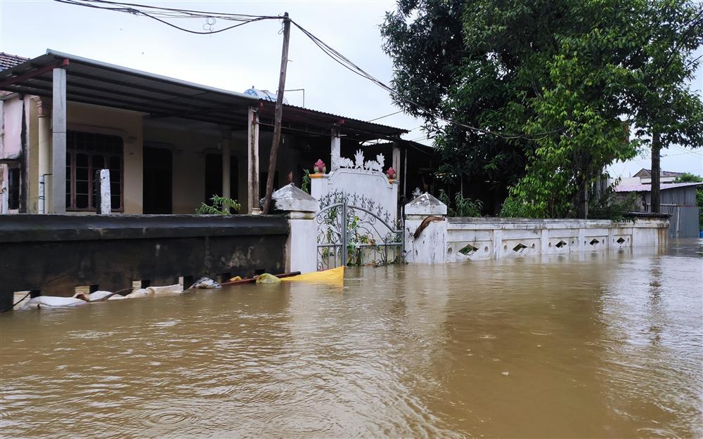 Tính đến thời điểm này, nhiều nơi quanh khu vực nhà ông Đính nước lũ còn ngập sâu trên 1.5 mét.