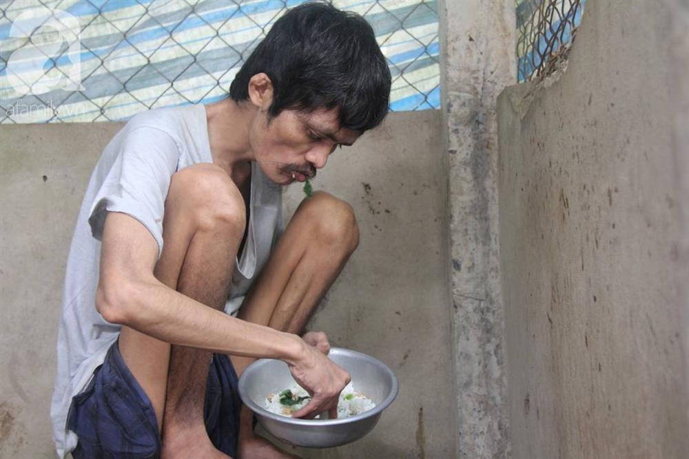 Bới tô cơm trộn với ít tép nhỏ, rau xào, bà Đầm lom khom ra sau vườn, nơi anh Hưởng đang sống để cho con ăn bữa trưa. Cũng vì phát bệnh nặng, suốt ngày chỉ biết la hét, đánh người nên buộc ông bà phải dựng riêng một cái chòi cho anh Hưởng ở tạm.