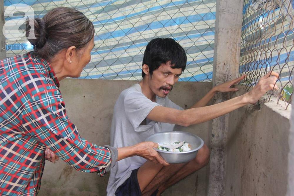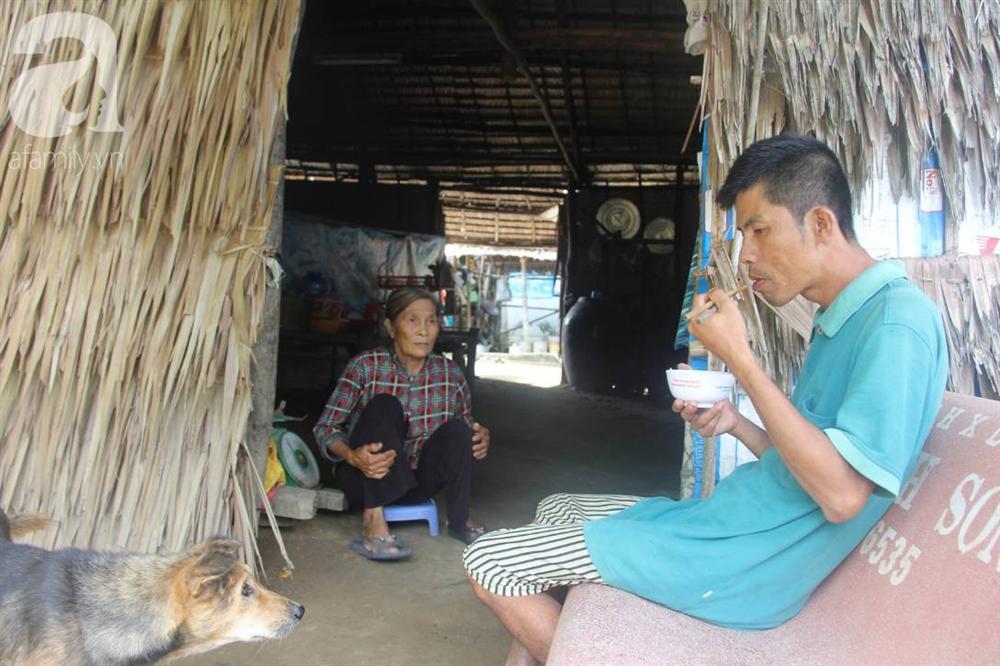 Theo bà Đầm, anh Hưởng từ nhỏ đã không được bình thường, hay đi đánh người, có lần đuổi đánh cả ông bà nên trong làng ai cũng sợ. Vài tháng nay thì anh bệnh nặng, đôi mắt không còn thấy đường nên ông bà dựng tạm cái chòi sau nhà để anh ở, cứ đến giờ cơm bà lại cặm cụi ra chăm sóc cho anh.