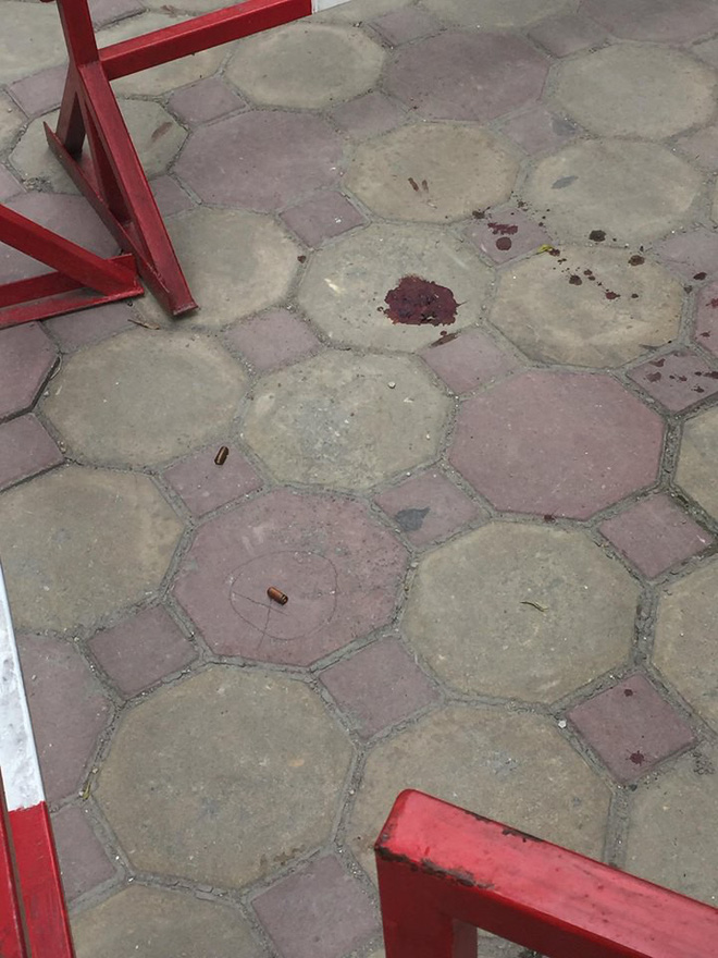 Ghi nhận của phóng viên, tại nơi xảy ra vụ nổ còn sót lại hai vỏ đạn và vết máu.