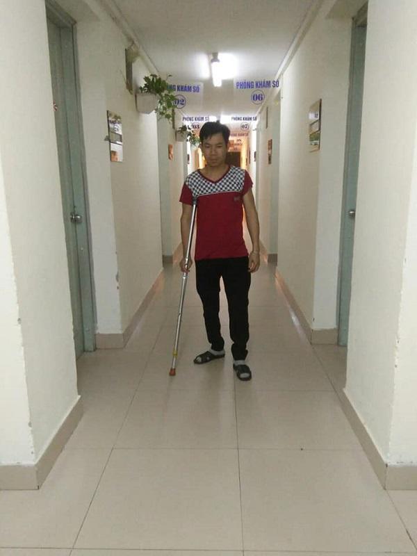 Quyết bị tai nạn lao động khiến không thể đi lại được bình thường.
