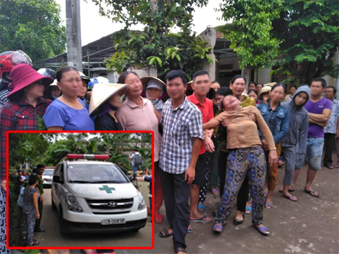 Các xe cứu thương chở thi thể nạn nhân tập trung tại nhà văn hoá thôn Lương Điền.