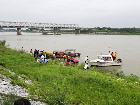Lực lượng chức năng tìm kiếm thi thể nạn nhân.
