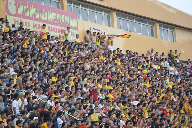 Hình ảnh sân Thiên Trường chật kín khán giả trong trận đấu chiều 4/8.