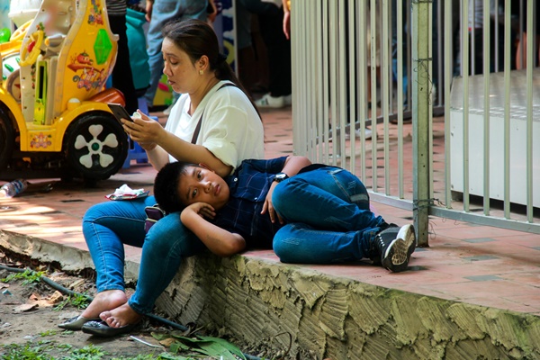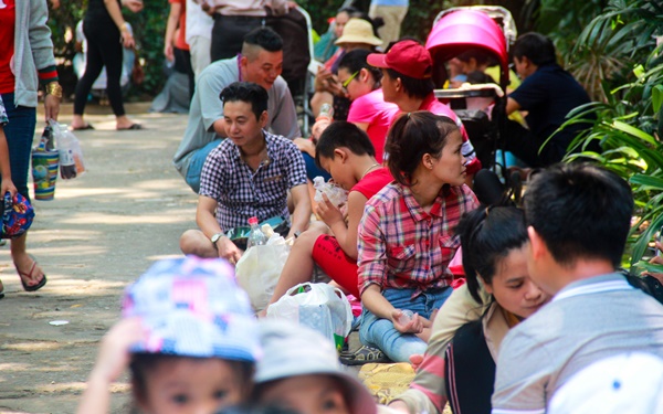 Tuy nhiên, số lượng du khách đến Thảo Cầm Viên lên tới hàng ngàn người nên đi đâu cũng chen chúc nhau. Đặc biệt là các em nhỏ, luôn trong tình trạng mệt mỏi, vật vờ vì phải chen lấn tại các điểm vui chơi, thêm vào đó là thời tiết nóng nực cũng làm nhiều em nhỏ khó chịu.