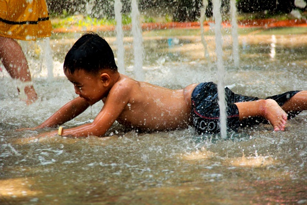 Các em nhỏ thỏa thích chơi đùa, nghịch nước mà không sợ cha mẹ ngăn cấm.