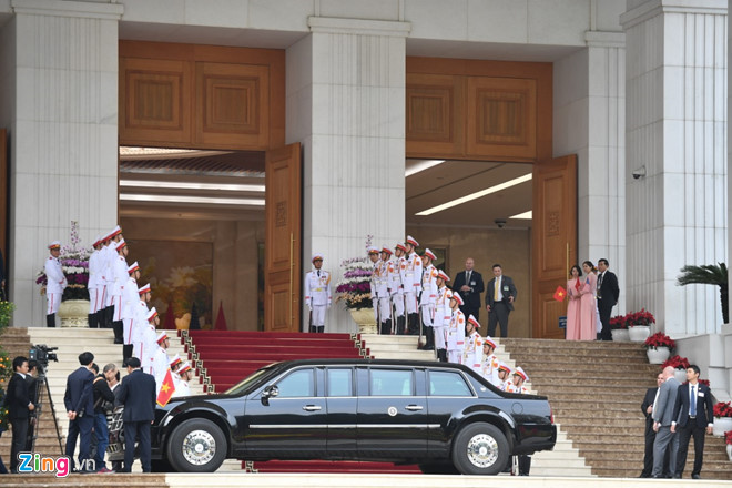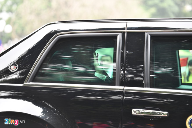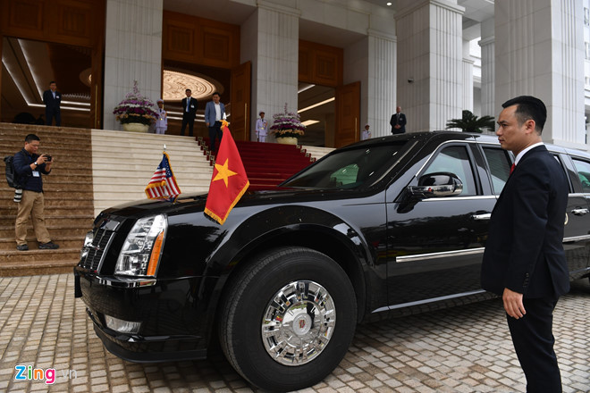 Cận cảnh chiếc chuyên xa đưa TT Trump tới Phủ Chủ tịch để gặp gỡ Tổng Bí thư, Chủ tịch nước Nguyễn Phú Trọng. Ảnh: Qúy Nguyễn