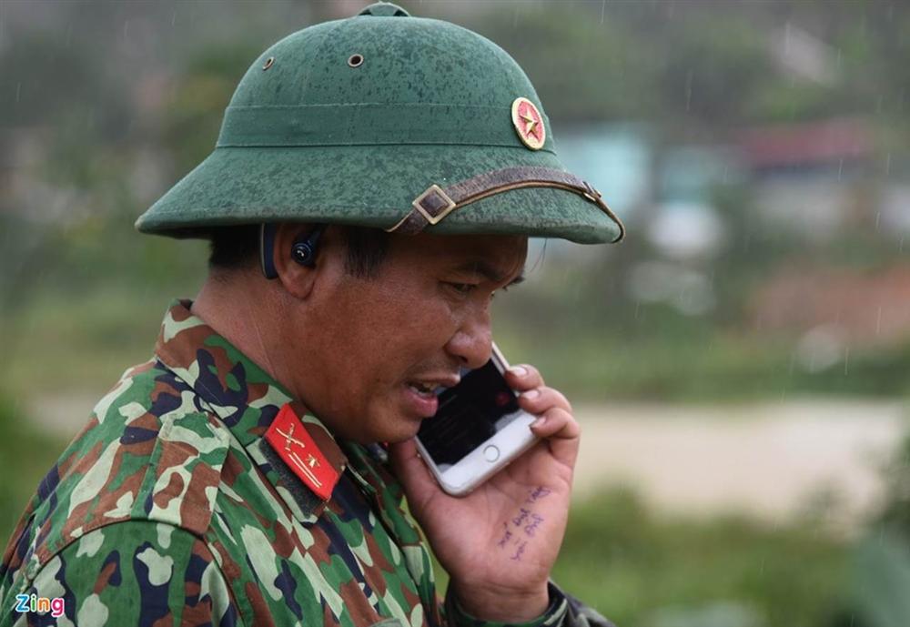 13h45, hiện trường vụ sạt lở có mưa nặng hạt. Một cán bộ Đoàn 337 viết ra tay thông tin quê quán của một nạn nhân bị vùi lấp để thông báo cho gia đình.