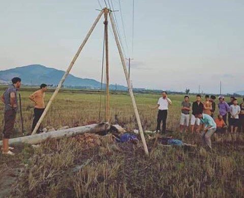 Hiện trường cho thấy, 4 người tử nạn đang thi công chồng cột để kéo cáp viễn thông.